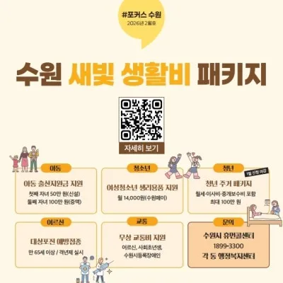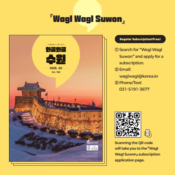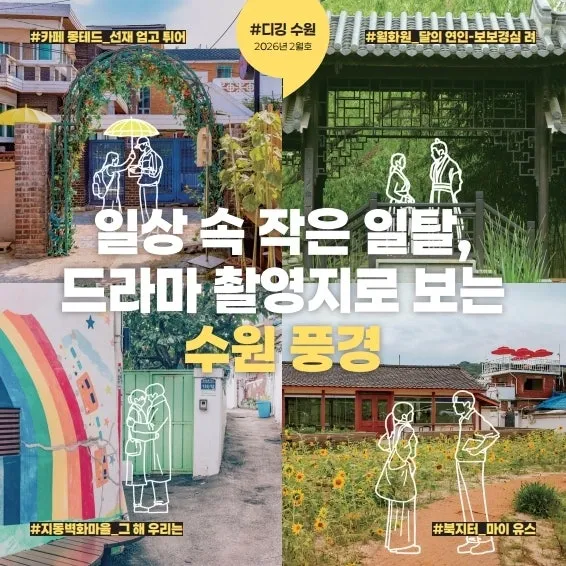 시정소식지 '와글와글 수원' 2026년 2월호📚 수원 새빛 생활비 패키지 등 지원 사업 & 드라마 촬영지로 보는 수원 풍경