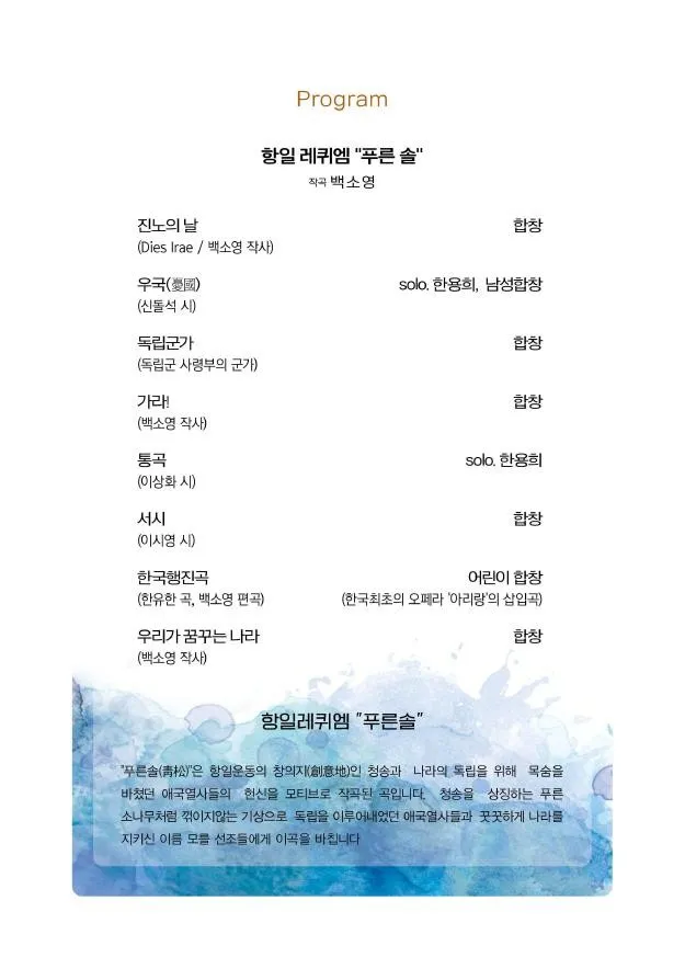 청송문화예술회관, 항일 레퀴엠 「푸른 솔」 음악회 안내