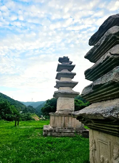계단을 올라오면 석탑 두 개가 눈에 먼저 들어옵니다.