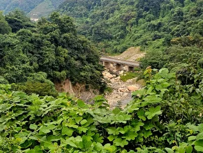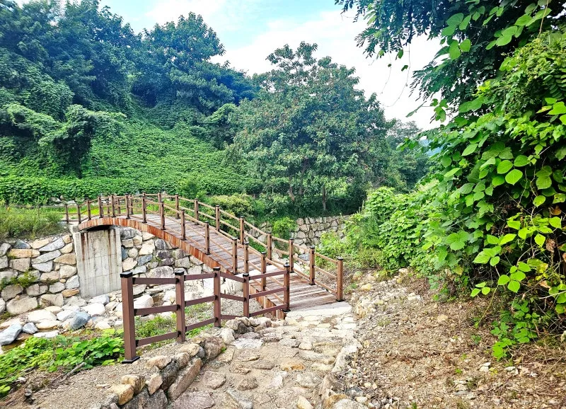 펼쳐진 계곡의 굽이와 다리의 풍경이 주위의 짙푸른 초록으로 인해