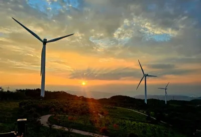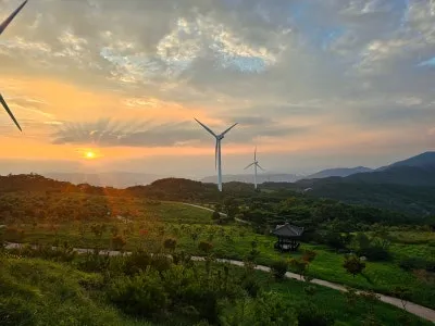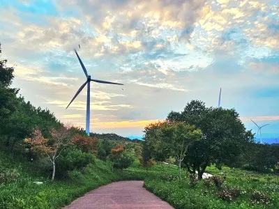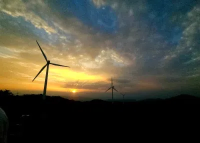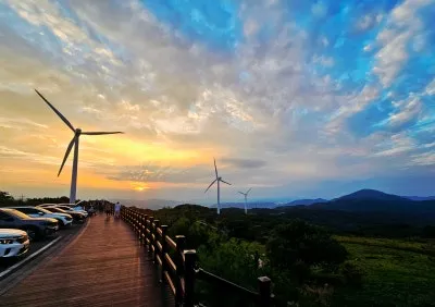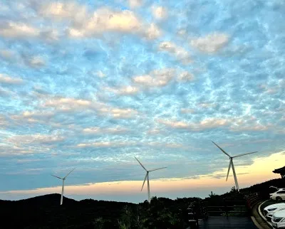 풍력발전기도 보이고 석양으로 물들어 갈려는 구름도 보입니다.