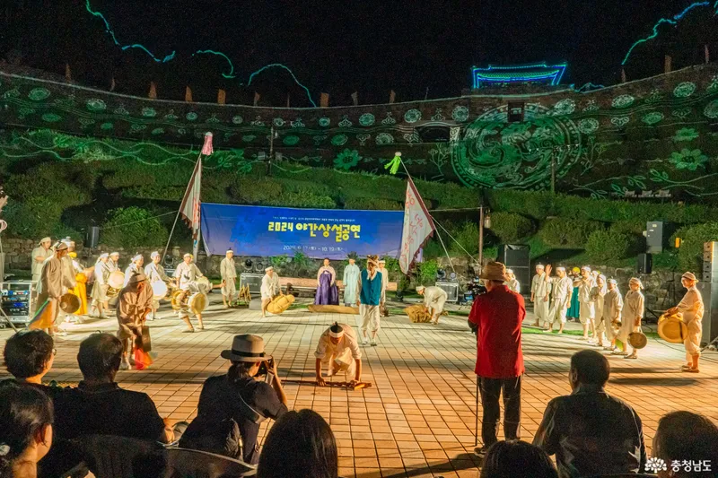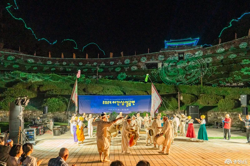 관람을 마치고 집으로 향하는 길, 멀리서부터 들리는 풍악소리와 함께 공산성에 보이는 이색적인 풍경에 급하게 차를 세웠는데요. 알고 보니 2024 공주문화유산 야행 축제와 맞물려 공주 공산성에서 "2024 공산성 야간성설공연"이 펼쳐지고 있었습니다.