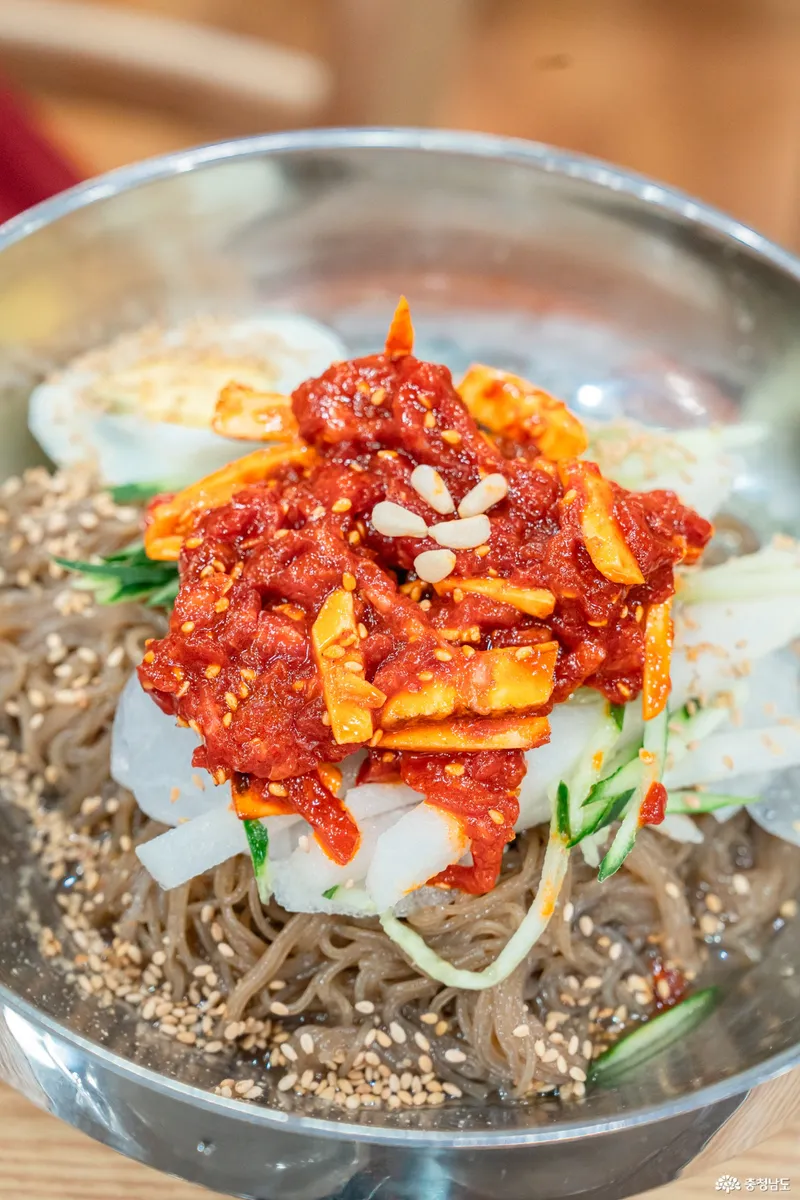 육회가 듬뿍 들어 있어 맛은 있으나, 어린 아이들이 먹기에는 다소 매운감이 있어 저희 아이는 함께 나온 물냉면 육수에 면만 건져 물냉면 처럼 먹었답니다.^^