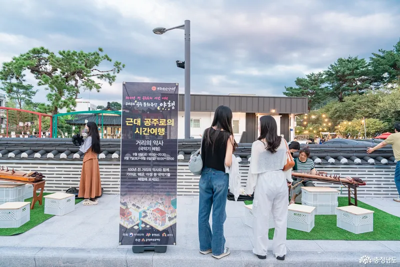 야행, 야식, 야숙, 야시 등 다양한 테마로 열린 이번 공주 문화유산 야행 축제에서는 "근대공주로의 시간여행"이라는 테마로 다양한 국악기를 체험해 볼수 있는 코너도 마련되었는데요.