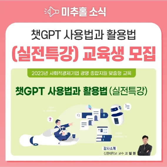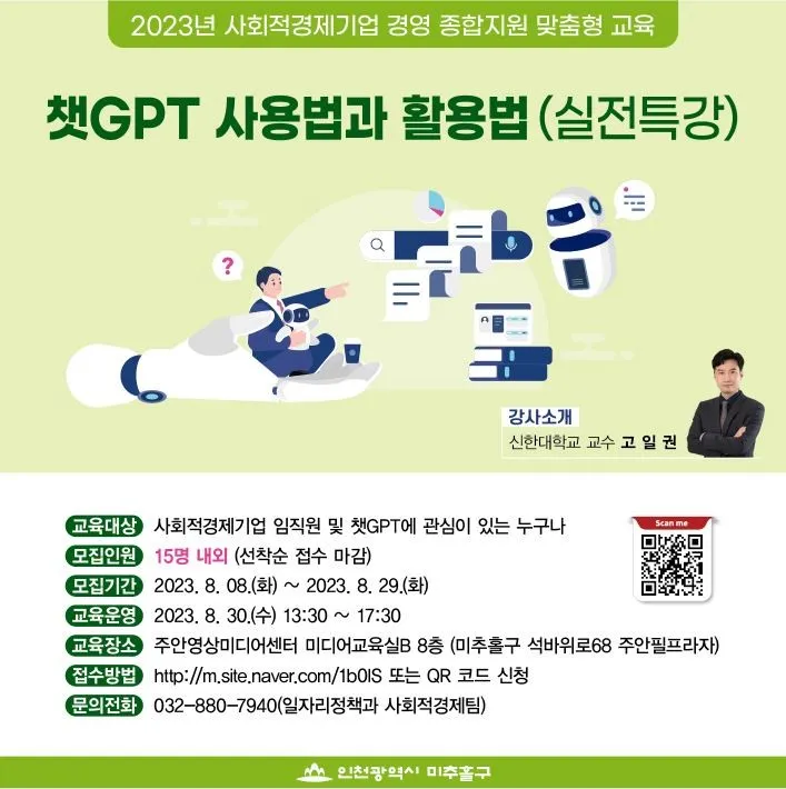 #미추홀구 #미추홀식 #챗GPT #챗GPT사용법과활용법 #챗GPT실전특강 #사회적경제기업임직원강의 #주안영상미디어센터 #주안영상미디어센터미디어교육실 #일자리정책과사회적경제팀 #고일권강사 #미추홀식 #챗GPT #챗GPT사용법과활용법 #챗GPT실전특장 #고일권강사
