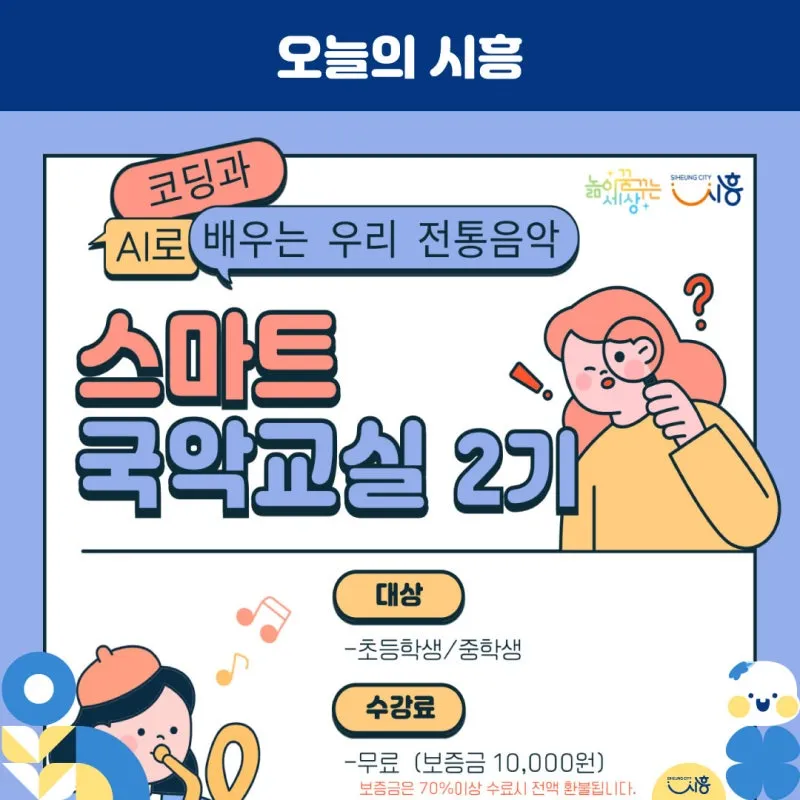 시흥시 복지국관계자는 “이번 스마트 국악교실을 통해 다문화가족 청소년들이 전통음악을 배우며 서로의 문화를 이해하고, 동시에 미래 기술을 접하는 특별한 기회가 될 것”이라며 “문화적 자긍심을 높이고 가족 간 소통과 교류를 확대하는 계기가 되길 바란다”라고 말했습니다.