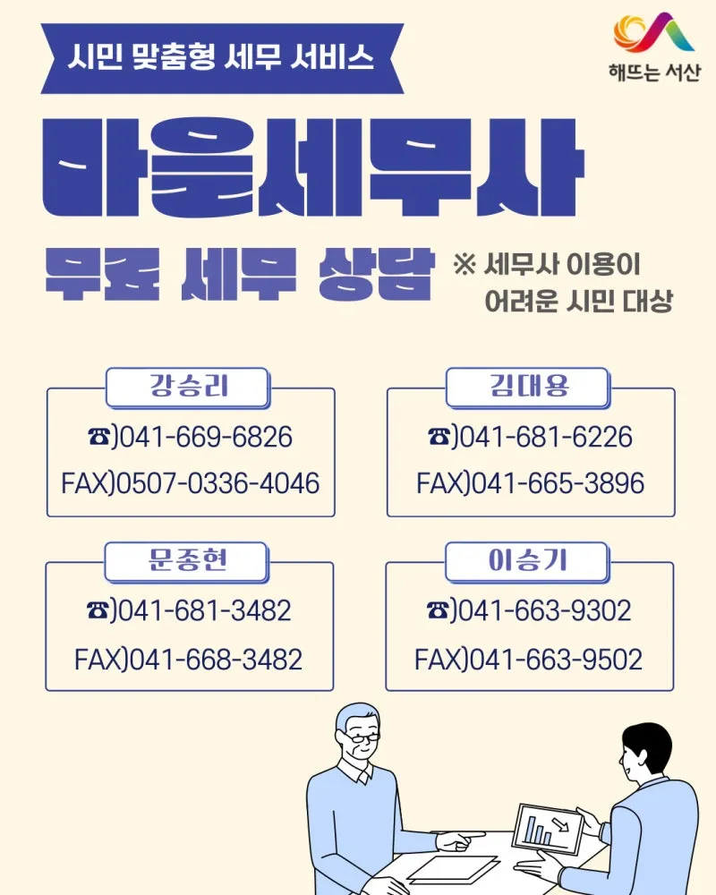 💡 세금 고민, 이제 혼자 하지 마세요 서산시 ‘마을세무사 무료 상담’ 서비스 안내