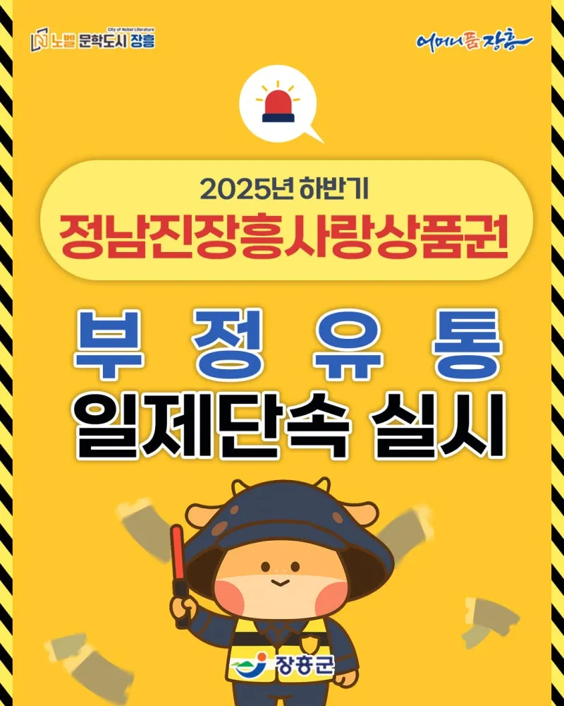 2025년 하반기를 맞아 정남진장흥사랑상품권 부정 유통 근절을 위한 일제 단속이 실시됩니다.