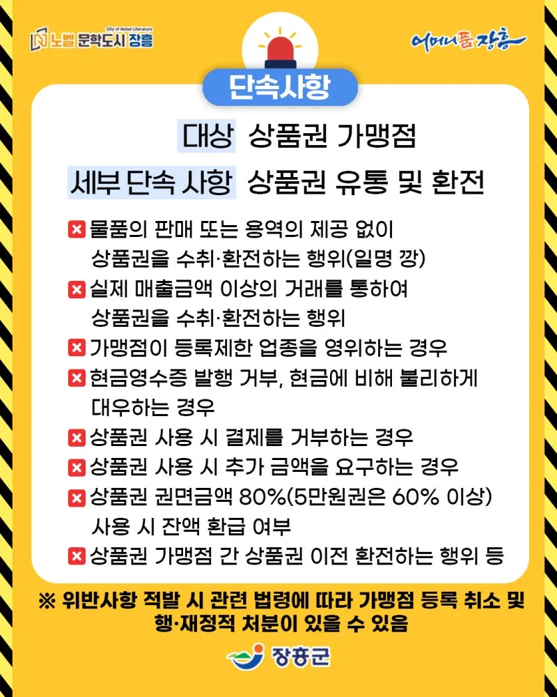 #장흥군 #정남진장흥사랑상품권 #부정유통근절