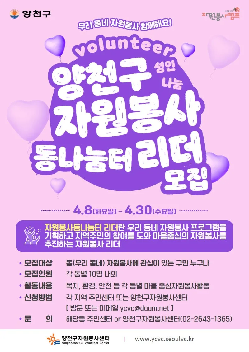 우리 동네 자원봉사 함께해요! 양천구 자원봉사 동나눔터 리더 모집