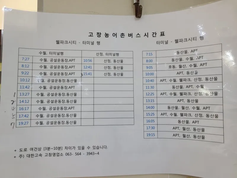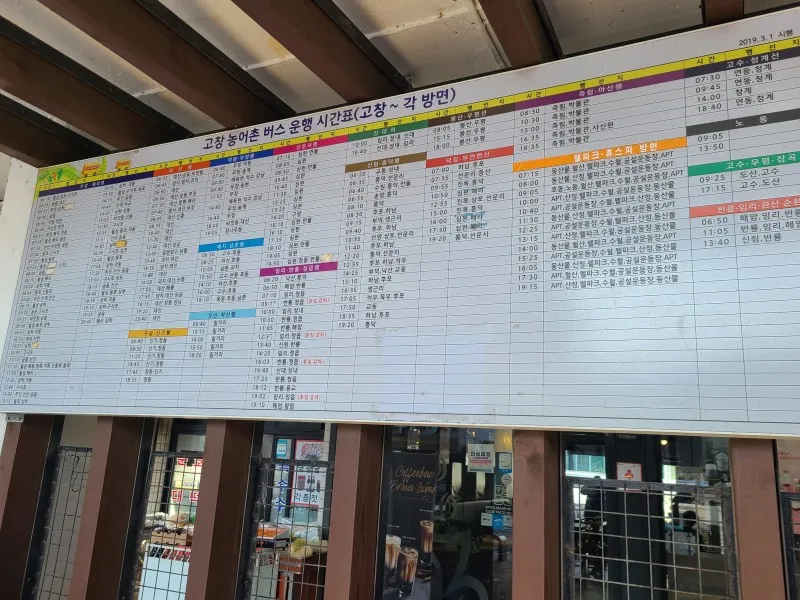 시간표에 맞춰서 선운사 버스 터미널에서