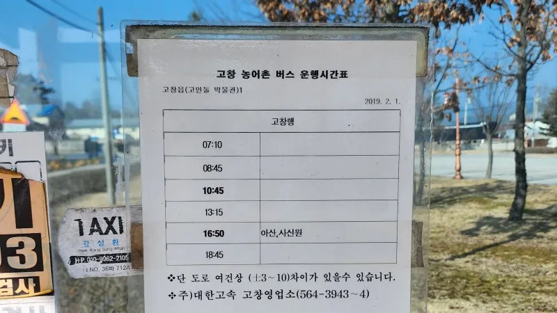 고인돌박물관에서 고창 터미널로 돌아오는 버스는