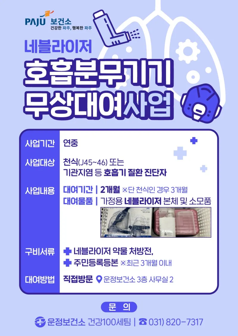 아토피·천식 의료비 지원 및 호흡분무기기(네블라이저) 대여사업 안내