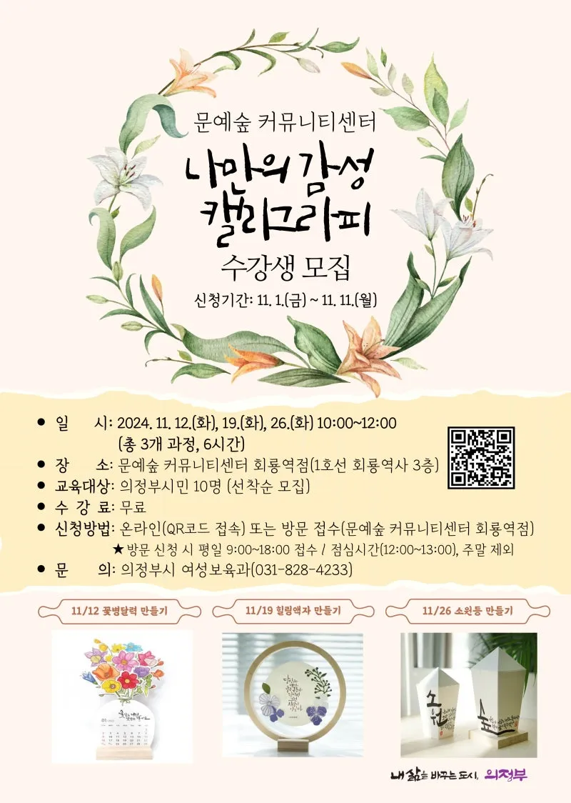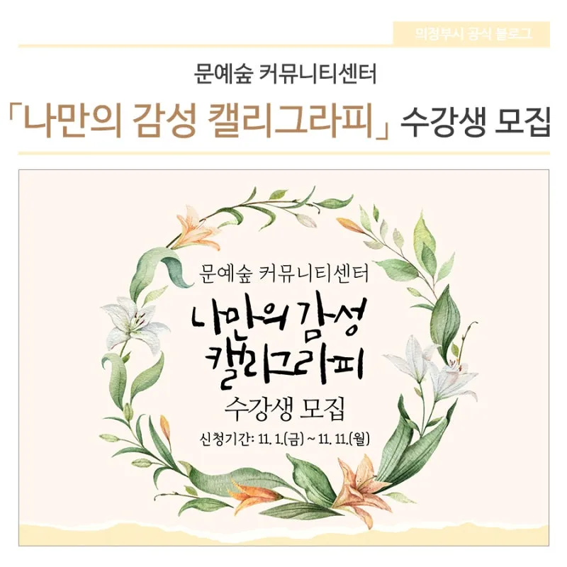 문예숲 커뮤니티센터 「나만의 감성 캘리그라피」 수강생 모집