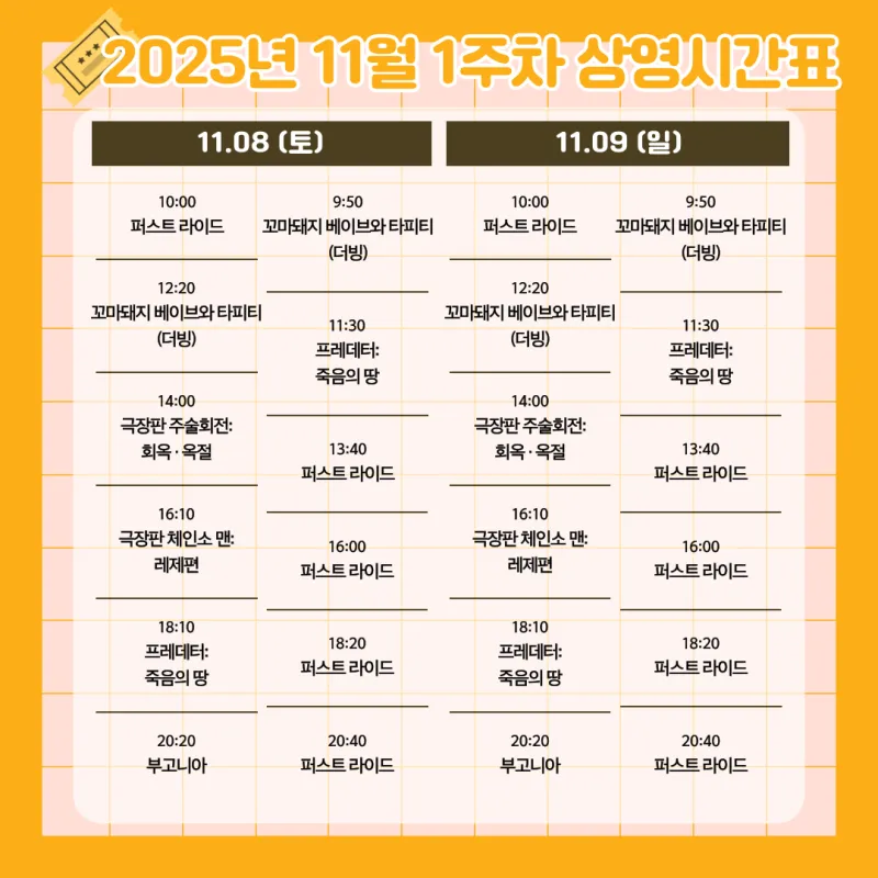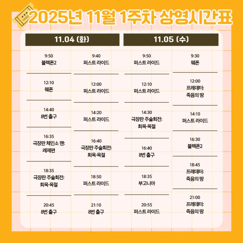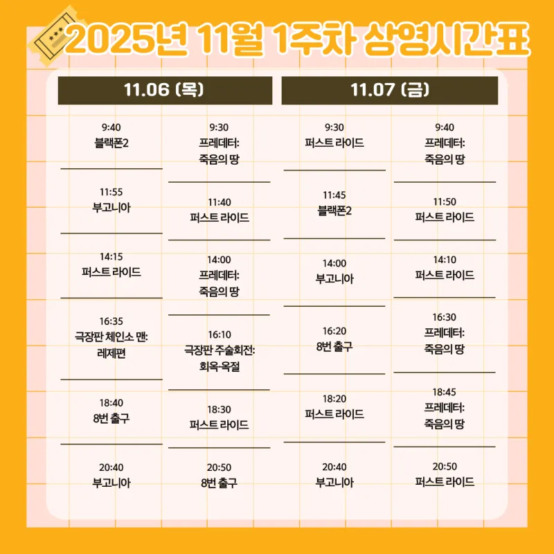 2025년 11월 1주차 영광 작은영화관 상영시간표 안내