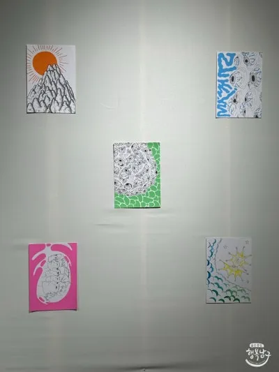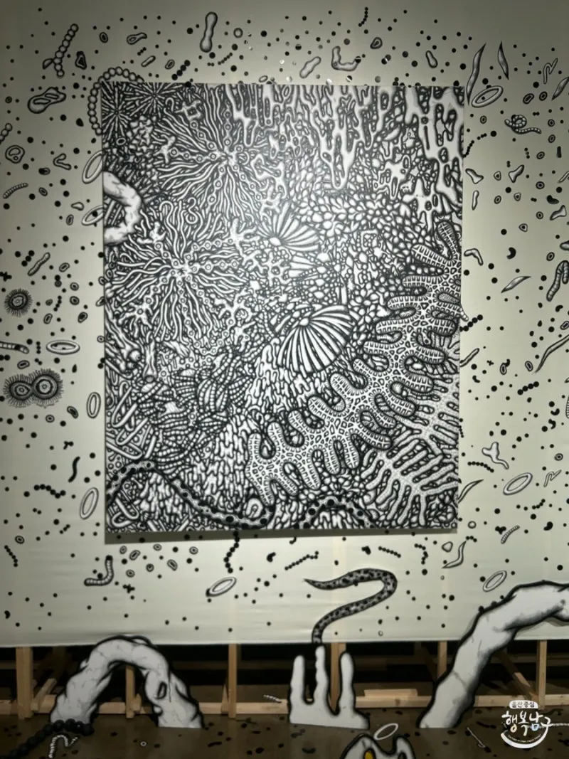 그래서 다른 그림들도 캔버스 속에만 그려져있는 게 아니라 천장에도, 벽에도, 바닥에도 자유롭게 작품이 전시되어 있는 것을 볼 수 있습니다.