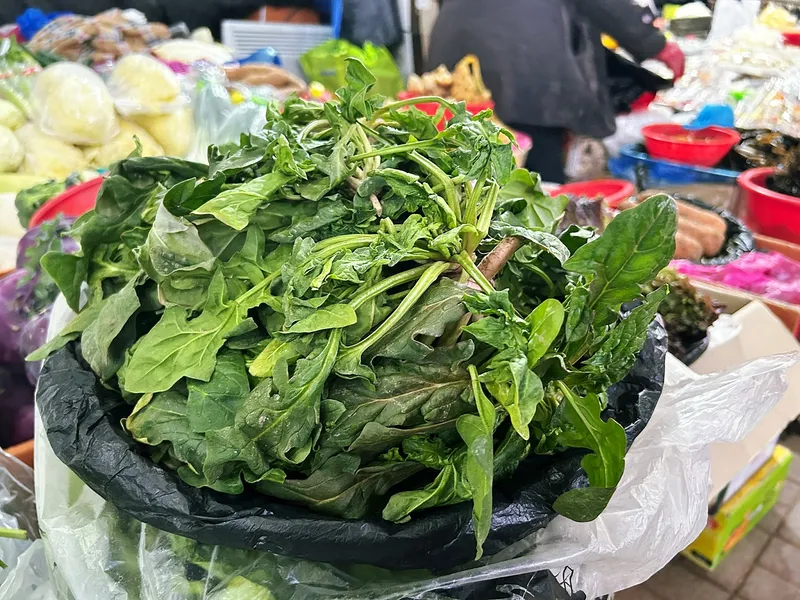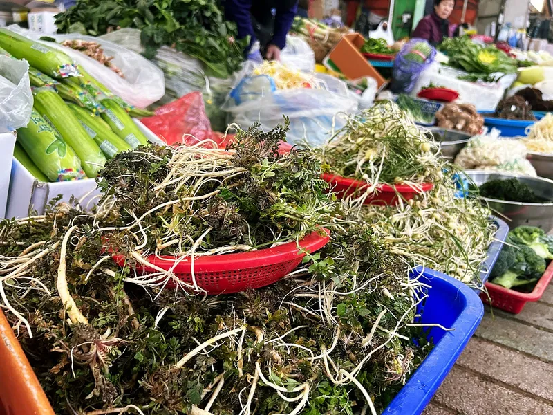 냉이, 섬초,미역 등 요즘 한창 맛있는 야채와 해초류도 보입니다.