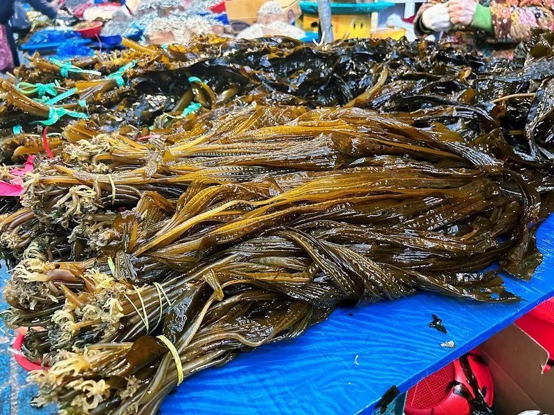 겨울철에만 맛볼 수 있는 생미역은 정말 신선해 보였습니다.