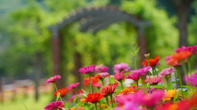백일홍 꽃밭이 조성되어 있습니다.