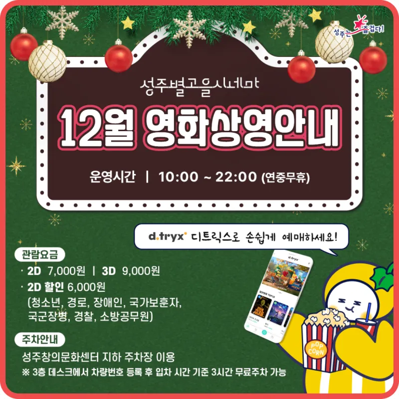 #성주 #성주군 #참별이 #성주별고을시네마 #작은영화관 #성주영화관 #성주작은영화관 #영화 #씨네브런치 #박스오피스 #12월영화 #12월박스오피스