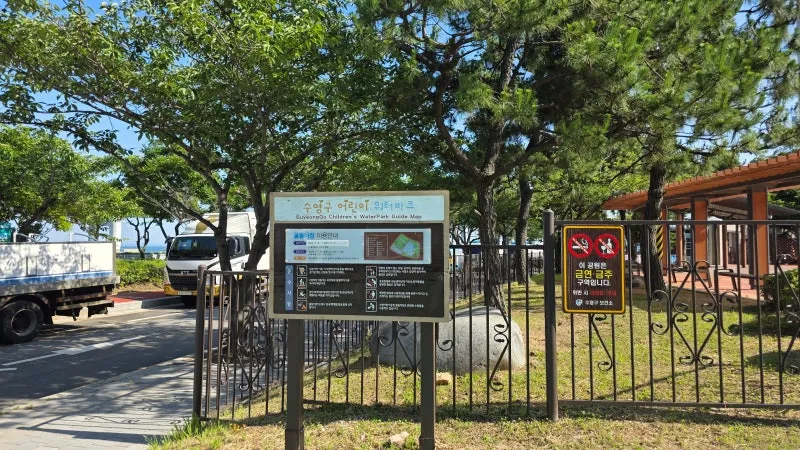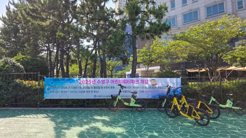민락수변공원의 여름에는 특별한 즐거움도 준비되어 있는데요, 민락수변공원 맞은편 수변어린이공원 내에는 어린이 워터파크가 7월 1일부터 8월 31일까지 운영되며, 워터드롭과 야자수 버켓, 바닥분수 등의 시설이 마련되어 있어 아이들과 함께 방문하기에 좋습니다.