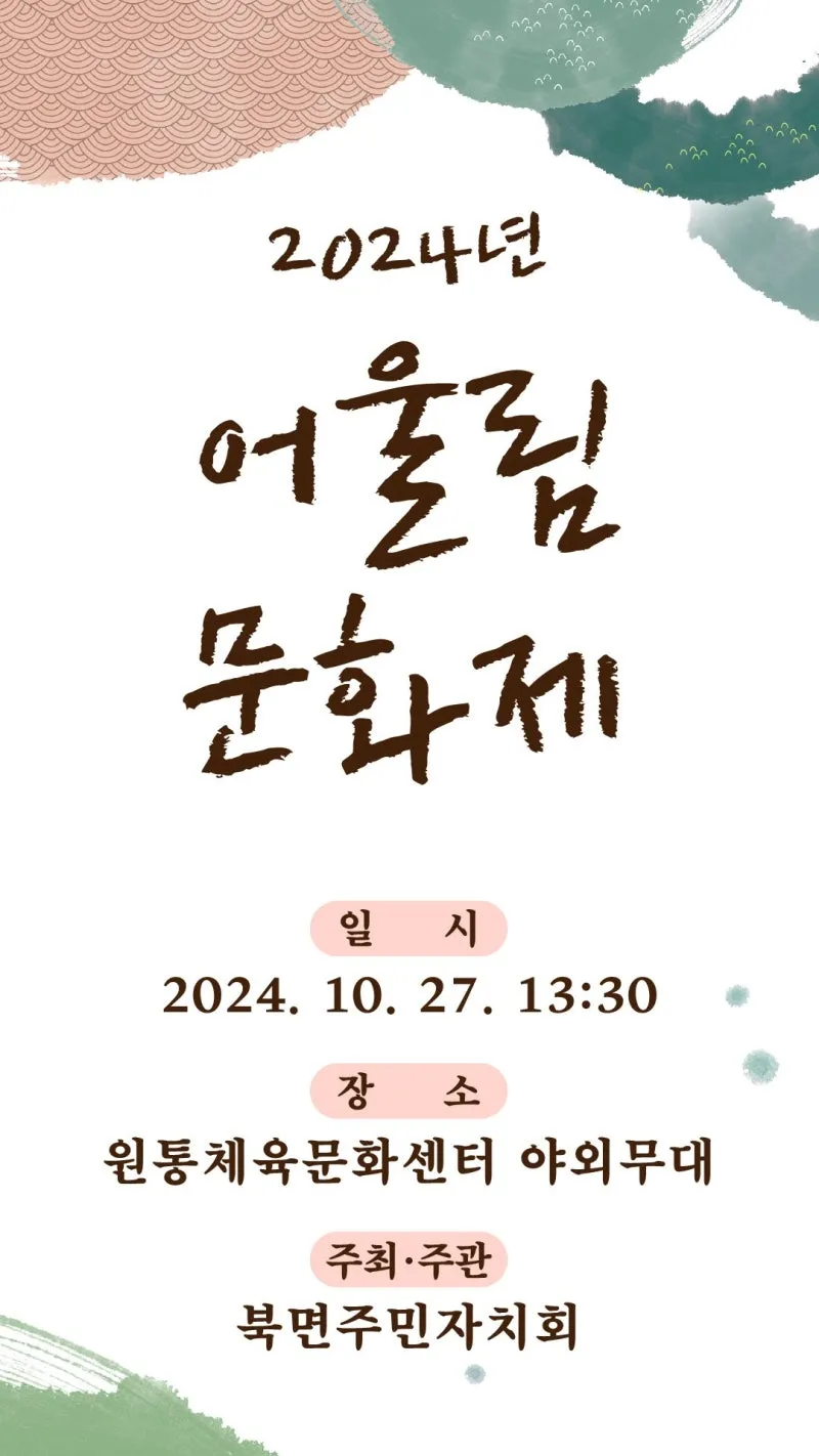 북면 주민자치프로그램 발표회, 체험부스가 운영되며,