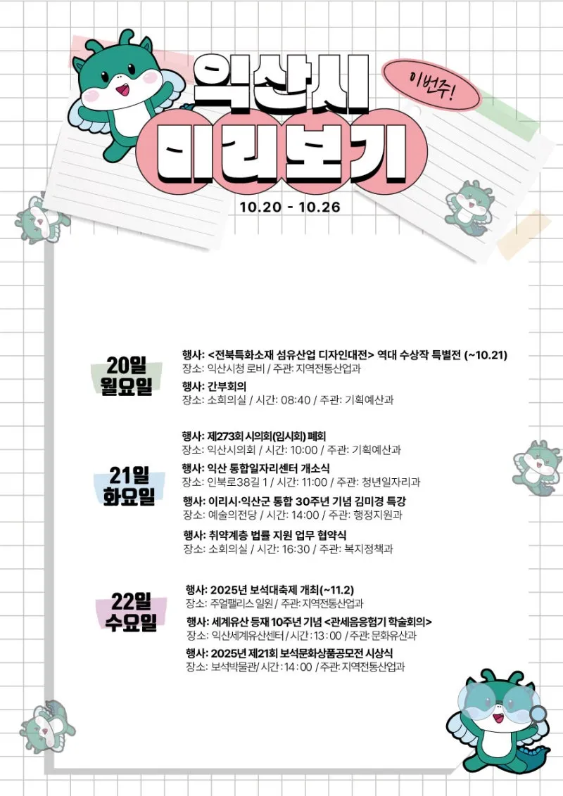 📢 익산시 주간 주요 일정 (10.20. ~ 10.26.) 📢