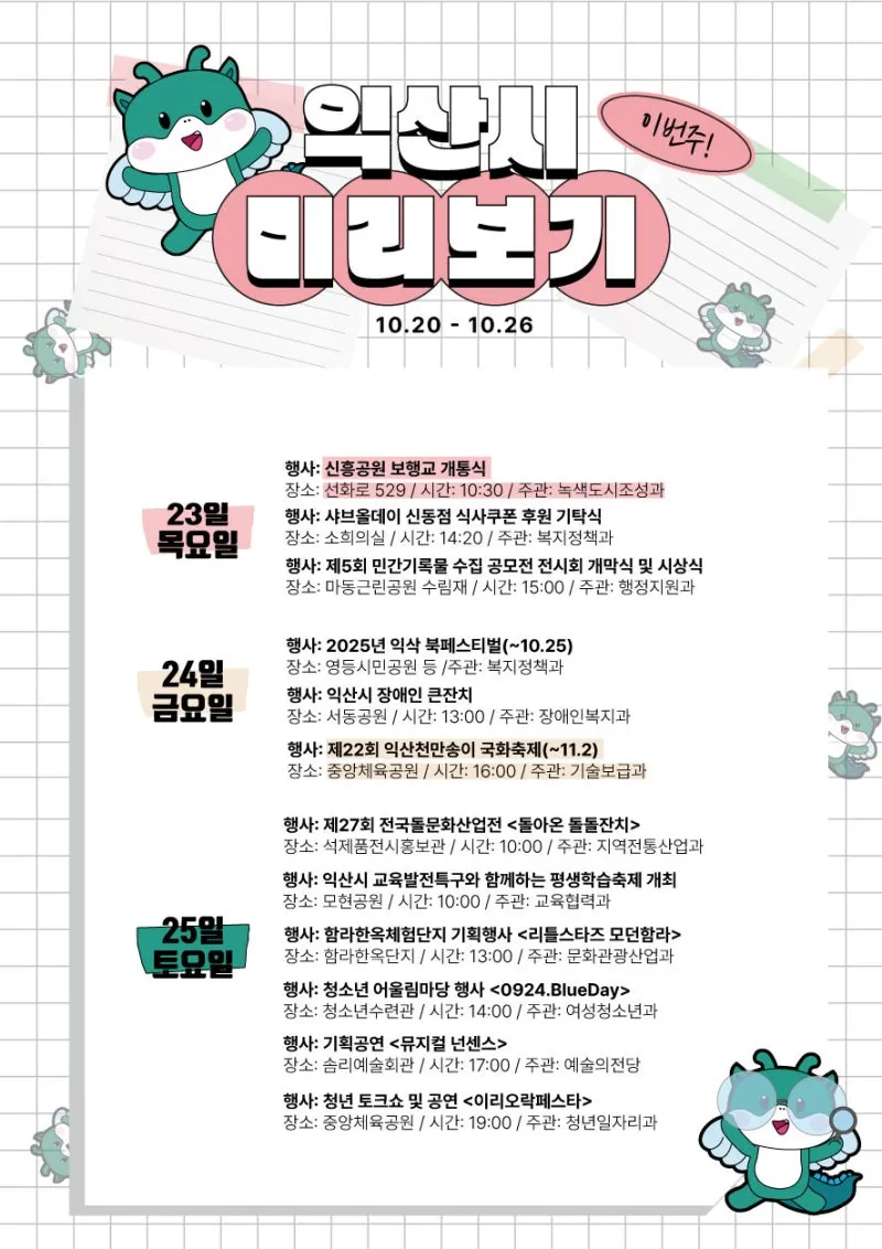 익산시 주간 주요 행사 10월 3주차 (2025. 10. 20. ~ 10. 26.)