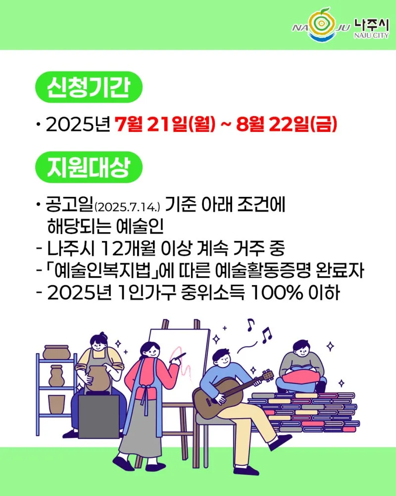 나주에 거주 중인 예술인 분들이라면 아래 내용을 꼭 확인해보세요! 👀