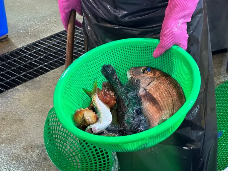 구경하는 도중에 모듬회 한 바구니가 손님들에게 선택되었네요.