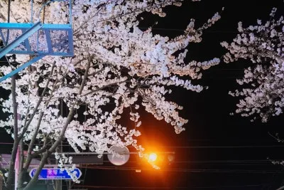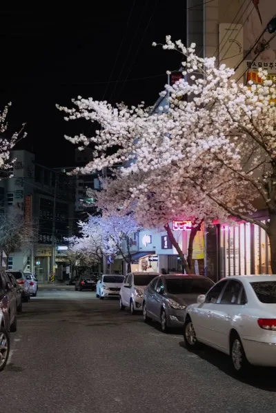 낮과 밤 아름다운 벚꽃을 구경할 수 있었어요.