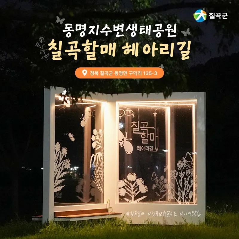 [칠곡곳곳] 밤 산책 즐기기 좋은 8·9월 가을 여행지 추천! 동명지수변생태공원에 조성된 칠곡할매헤아리길