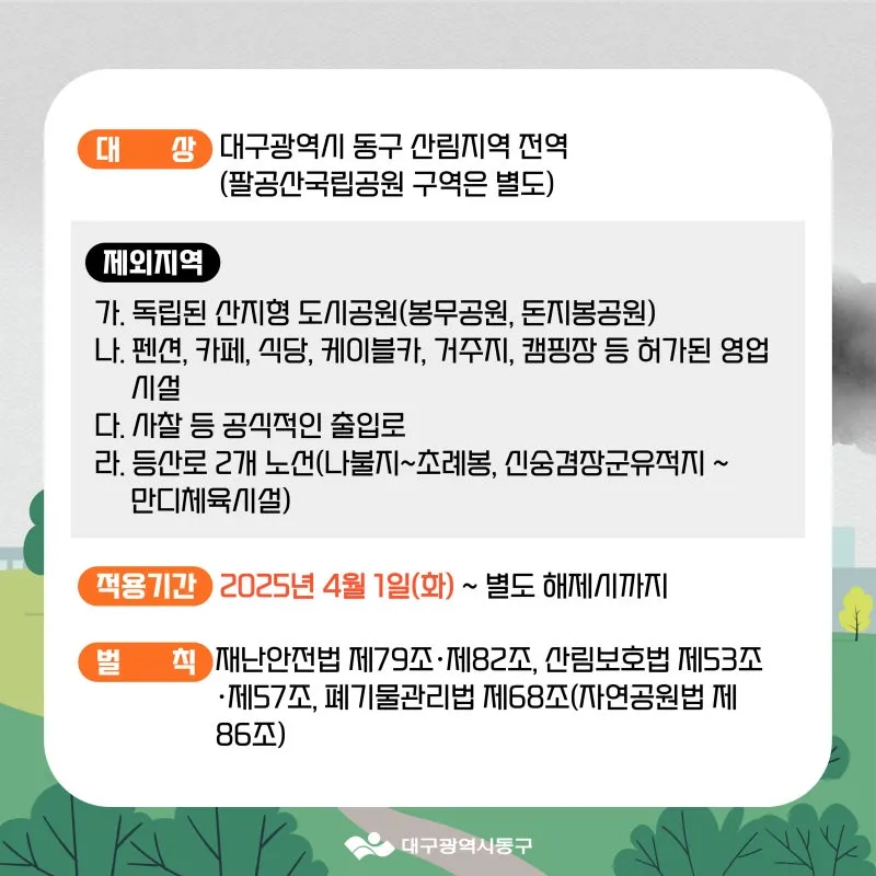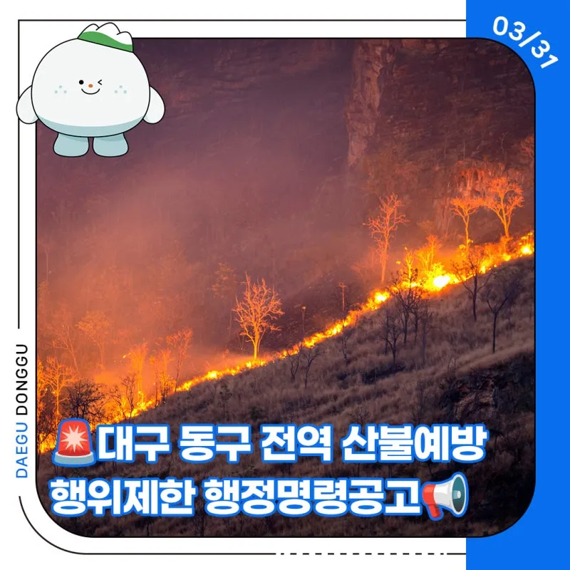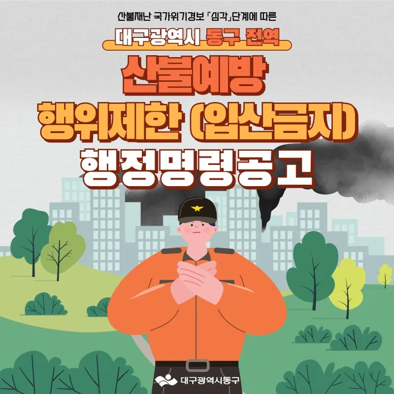 대구 동구 전역 산불예방 행위제한(입산금지) 행정명령공고