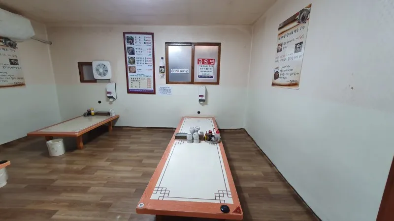 겨울날의 잣나무숲이 궁금해서 잣향기푸른숲으로 취재를 떠나는 길에 지인들이 맛있다며 이구동성으로 칭찬하던 '신숙희진골막국수'에 들려 점심을 해결하고자 했지만, 해당식당은 주차공간이 미어터질 정도로 이미 많은 사람들이 방문한 상태라 혼자 들어가기엔 엄두가 나지 않았습니다. 결국 점심시간 이후에 계획했던 잣향기푸른숲 취재를 먼저 진행했고 사람이 썰물처럼 빠져나간 시점에 다시 방문하여 늦은 점심을 먹을 수 있게 되었습니다. 신숙희 진골막국수 식당은 옛 시골집의 감성이 곳곳에서 묻어나는 식당인데요. 가정집을 개조해서 만든 식당이라 그런지 내부 홀의 이름도 큰방, 작은방, 가운데방, 옆방으로 나뉘어져 있는 것이 재미있게 다가왔습니다. 이곳에서 판매하는 메뉴는 편육과 막국수, 그리고 쟁반막국수와 감자전이 전부인데요, 지인들과 함께 왔으면 편육도 함께 주문했을테지만 오늘은 혼자 방문했기에 막국수하나랑 감자전 하나만 시켜야했어요(신숙희 진골막국수에서는 모든 음식이 주문 즉시 만들어지기에 기다리는 시간이 조금 필요하네요).