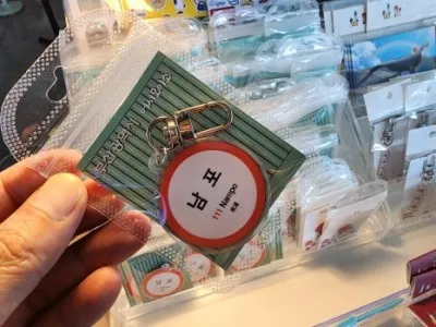 부산도시철도 1호선 남포역이 역명판을 디자인으로 살린 키링제품도 보입니다.