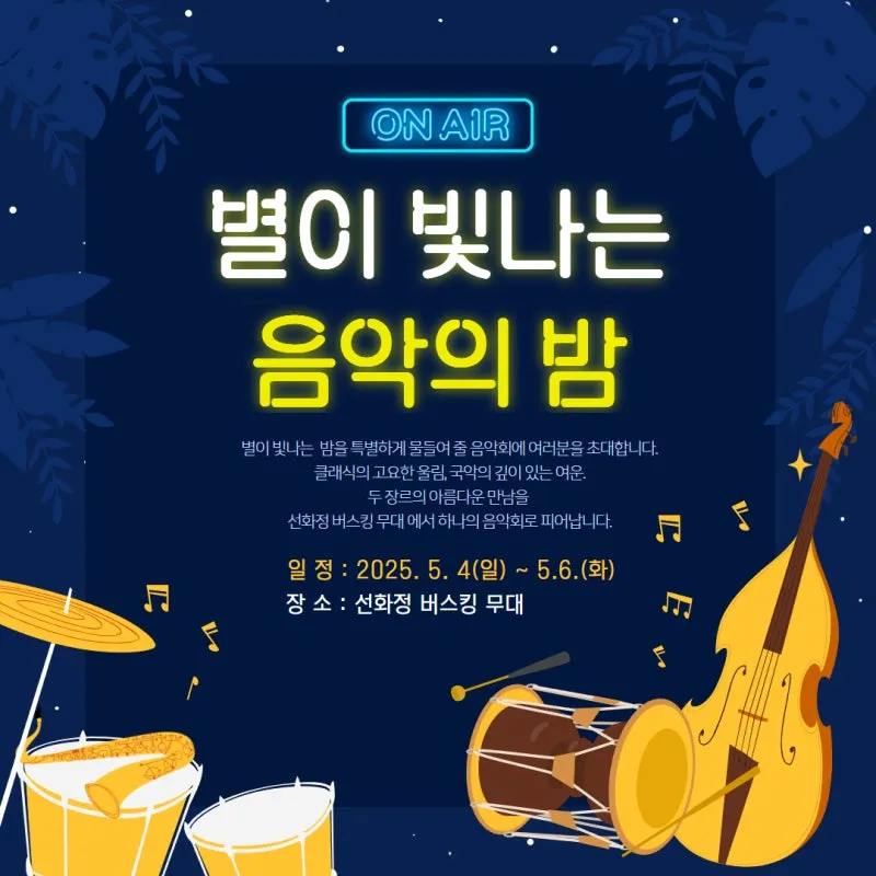 별이 빛나는 밤을 특별하게 물들여 줄 음악회에 여러분들을 초대합니다.