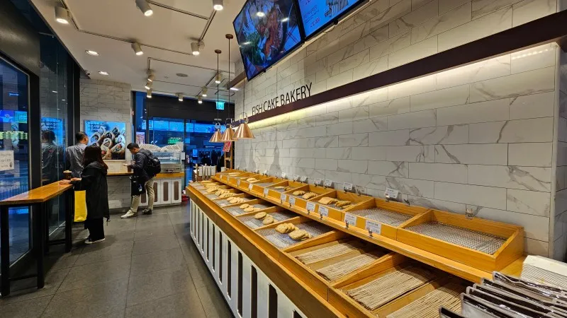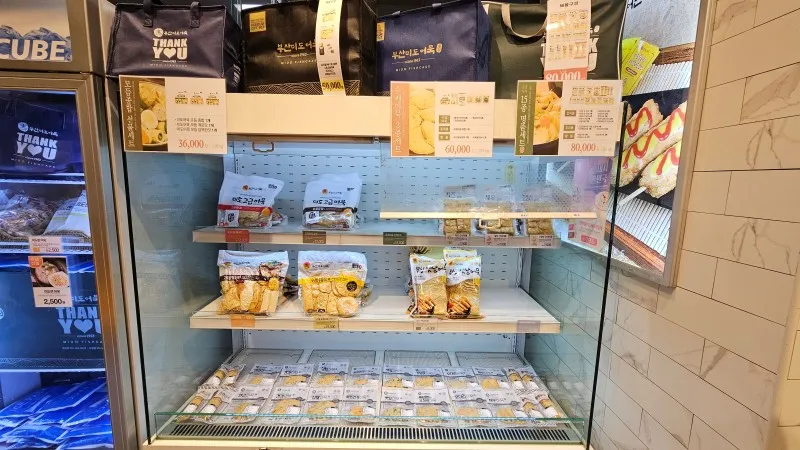 매장 안의 다른 어묵들은 전날에 거의 팔린 상태라 비워진 공간이 많았는데 곧 채워지겠죠.