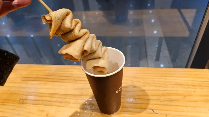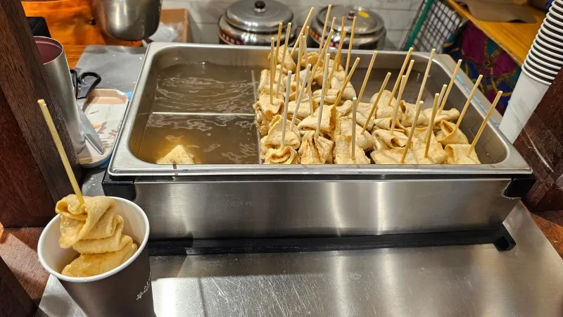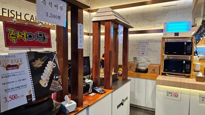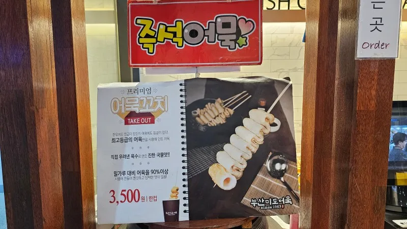 기차 시간이 급한 사람들에게는 즉석 어묵 꼬치가 가장 인기가 많습니다.