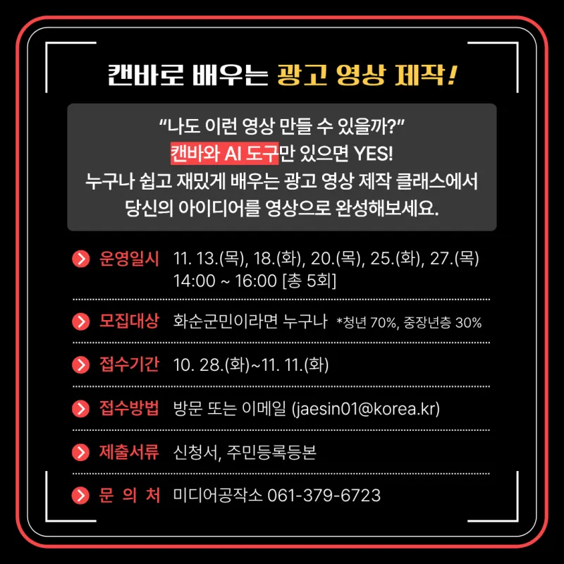 [청춘들락] '캔바로 배우는 광고영상 제작하기' 교육생 모집