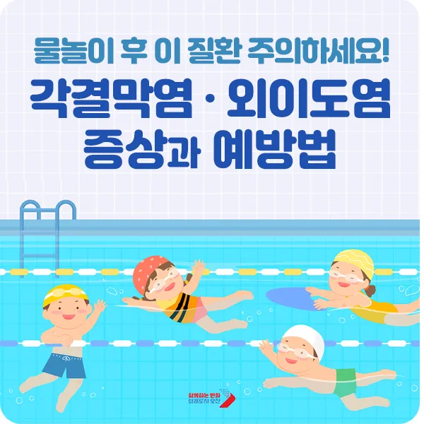 즐거운 여름휴가 시즌이 돌아왔습니다! 여름휴가 하면 가장 먼저 떠오르는 것이 바로 시원한 ‘물놀이’죠! 이글이글 뜨거운 태양에 맞서 즐길 수 있는 최고의 피서법이 아닐까 하는데요. 하지만 여름철 물놀이 후 주의해야 하는 질환도 있습니다. 바로 <유행성 각결막염>과 <외이도염> 같은 감염성 질환입니다. 물놀이 중 바이러스나 세균이 눈과 귀에 침투하면서 발생하기 쉽기 때문인데요. 이 질환들의 증상과 예방법을 알아보아요!