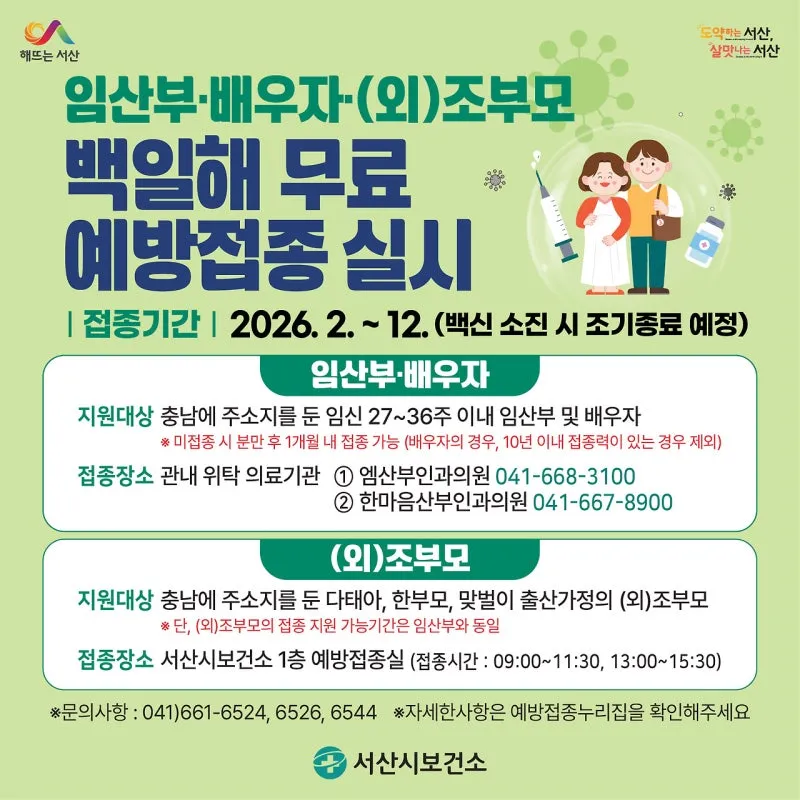 #서산시 #서산보건소 #백일해 #무료예방접종 #임산부지원
