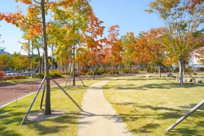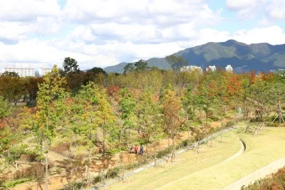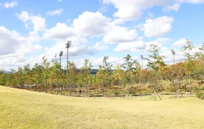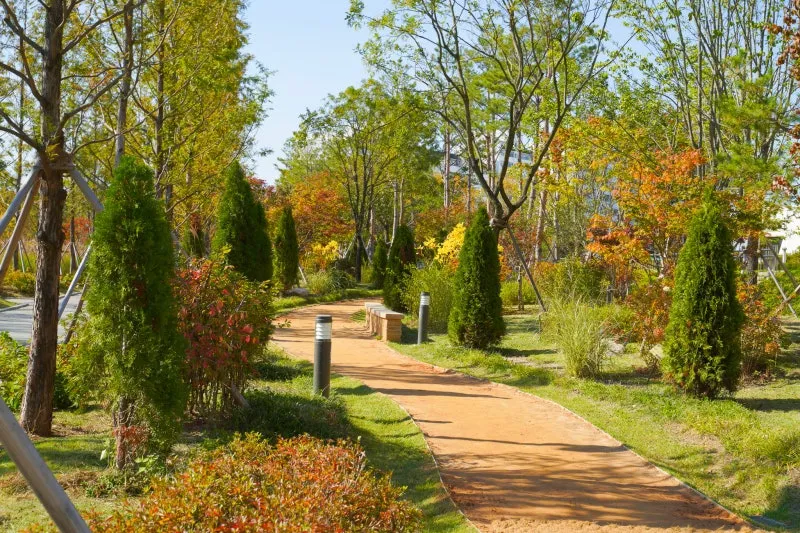 넓게 펼쳐진 잔디광장과 시원한 산책로가 이어져