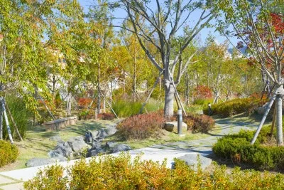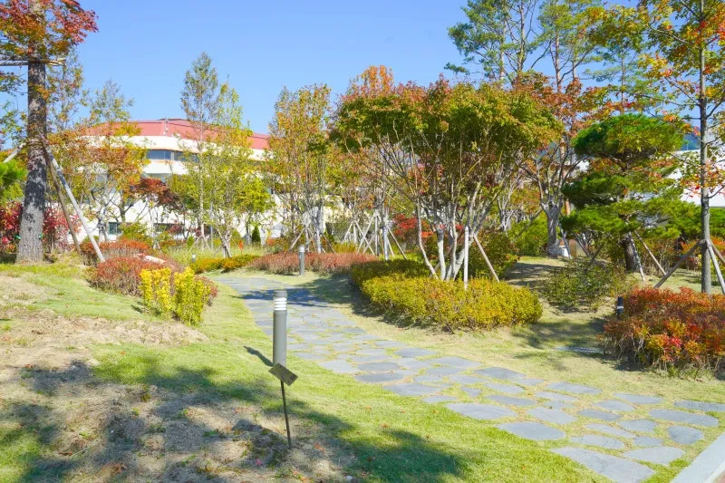넓은 잔디광장과 다양한 식물들로 꾸며져