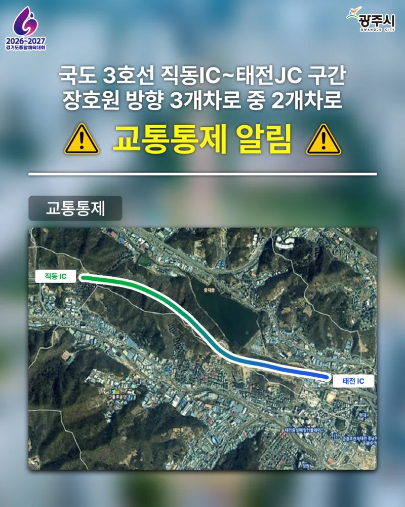직동IC ~ 태전JC 구간(장호원 방향) 일부 교통통제 알림