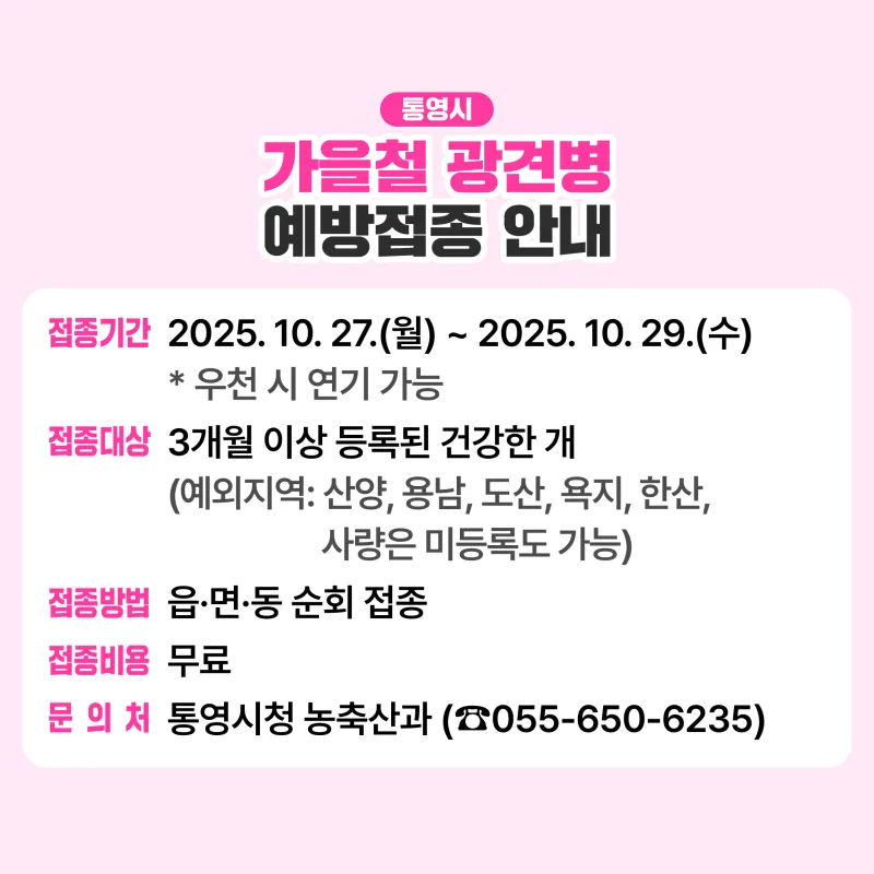 우리 강아지 광견병 예방접종, 무료로 맞아요!