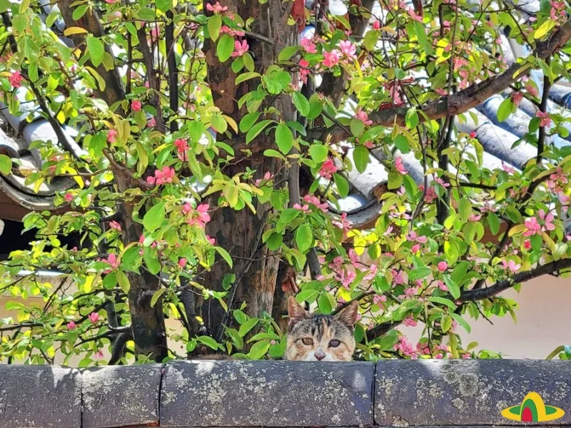담장 위에 앉았던 고양이도 그림 같습니다.