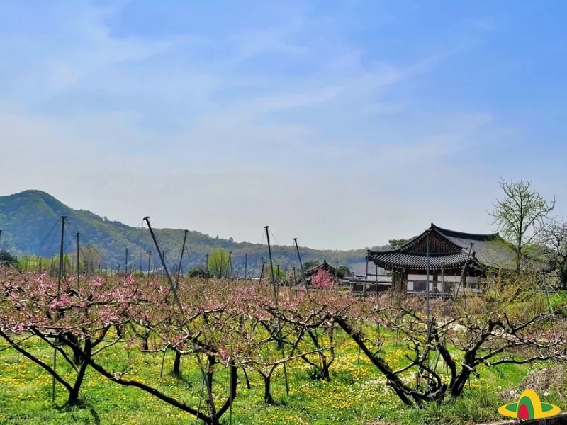 산운마을로 접어드는 길, 분홍분홍한 복사꽃 아래
