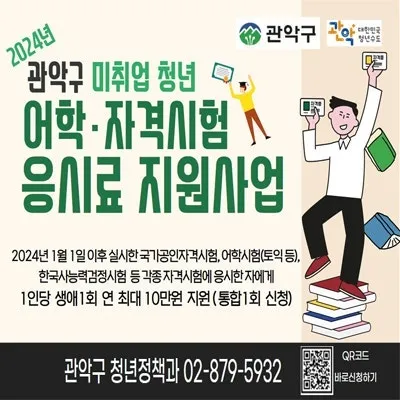 미래를 위해 끊임없이 노력하는 청년들을 위해 관악구가 응시료 부담을 덜어드립니다!