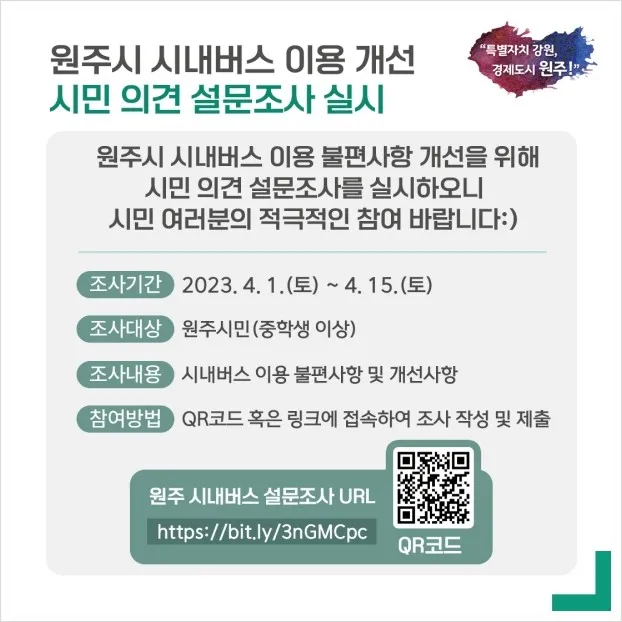 원주 시내버스 불편사항 개선을 위한 설문조사를 실시합니다!