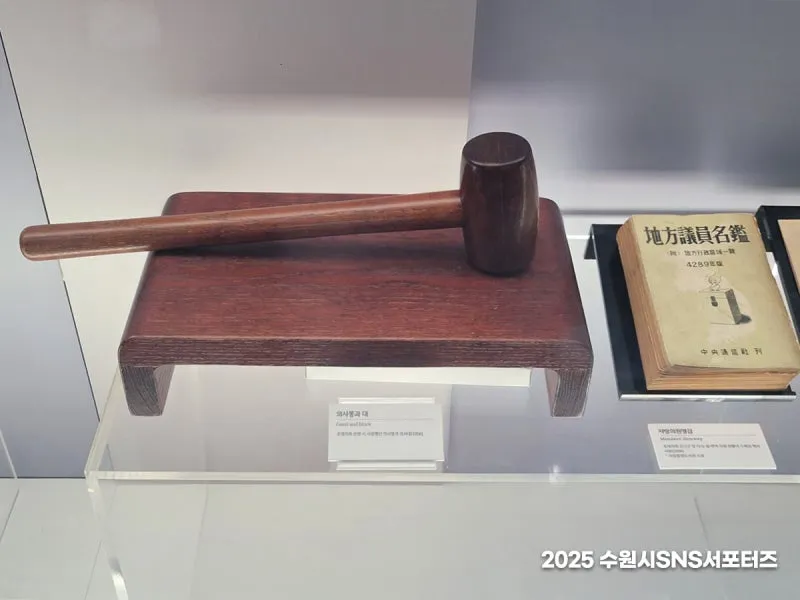경기도민의 행복한 삶의 향상을 위해 지방자치단체 자치규범인 ‘조례’를 제정하고, 집행부에 대한 감시와 견제를 통해 도민 삶의 질을 개선하기 위해 고민하며 노력한 경기도의회의 발자취를 다양한 자료를 통해 볼 수 있습니다. 저는 초대의회 운영 시 사용했던 의사봉과 의사대(1956)에 눈길이 갔습니다.